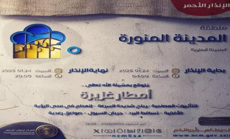 مدينة المنورة تواجه سيولاً قوية… مواطنون في حالة استنفار!